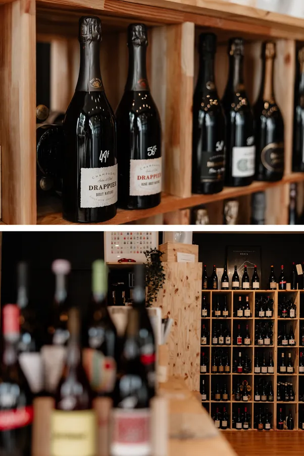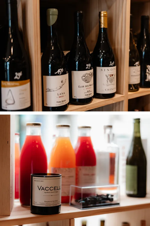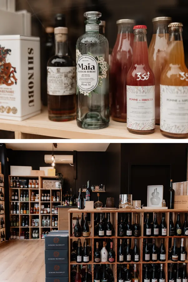 Ici, pas de carte figée : la sélection évolue au fil des saisons, des rencontres et de la curiosité. Vous y trouverez également une gamme pointue de sans alcool, spiritueux, bières artisanales et autres produits gourmets.
